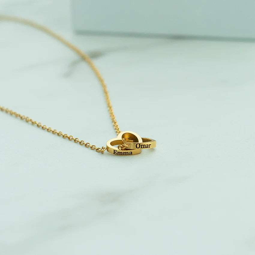 Double Heart Necklace : A beautiful piece representing the bond between two souls, with the option to engrave your names or a special message.